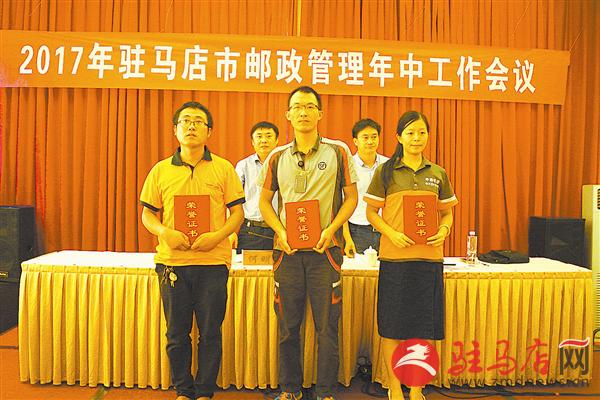 8月24日,市邮政管理局组织召开全市邮政管理年中工作会议。会上,对2016年度河南省快递行业诚信企业及在邮政行业职业技能大赛中获得“驻马店市技术能手”称号的优秀选手进行了表彰。2016年度河南省快递行业诚信企业分别是驻马店韵达快递有限公司、驻马店圆通快递有限公司、驻马店天天快递有限公司、驻马店中通快递有限公司,荣获“驻马店市技术能手”称号的选手分别是邮政速递马世伟、申通快递田艳、顺丰快递陈勇。