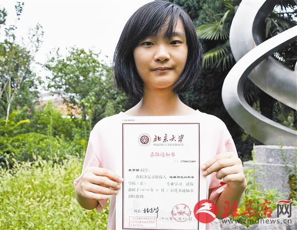 李子锦以656分的成绩获取全县理科第二名,被北京大学录取。