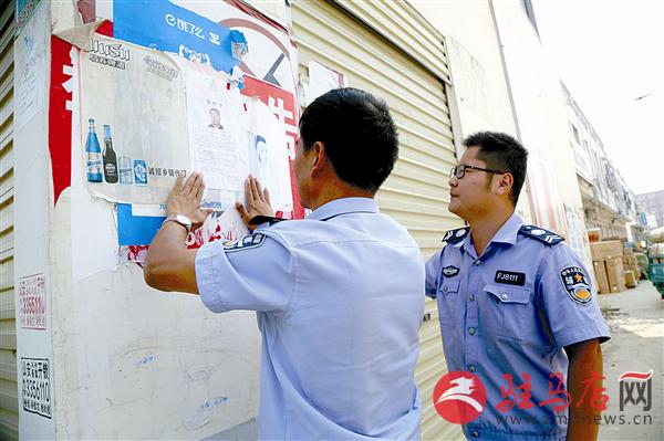 近日,上蔡县公安局加大扫黑除恶宣传力度,打造平安和谐治安环境,全力提升居民安全感。图为该局民警在张贴犯罪人员通缉令。