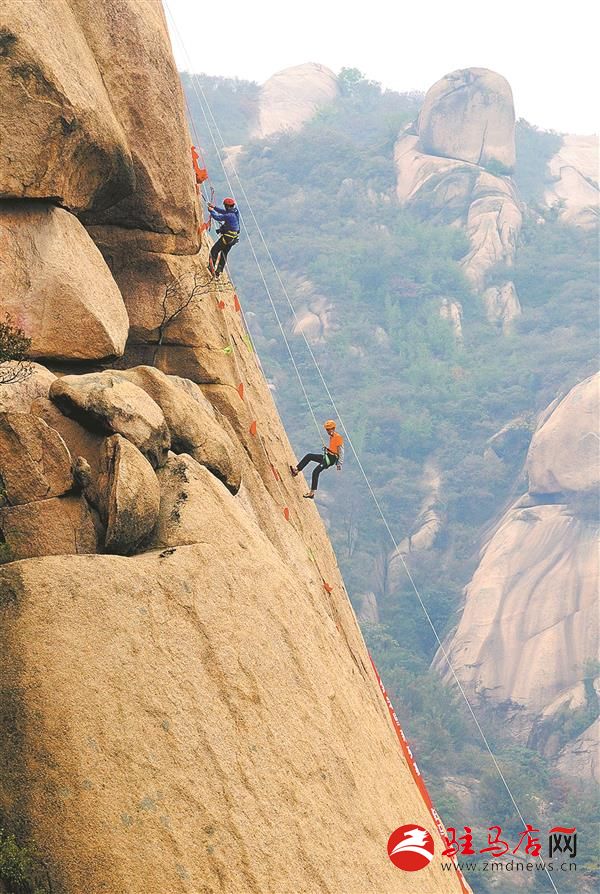 10月19日至21日,2018中国攀岩自然岩壁系列赛驻马店嵖岈山站在嵖岈山风景区举办。来自国内外的百余名优秀攀岩运动员齐聚嵖岈山天磨湖景区,凭借非凡的技巧和勇气,向嵖岈山天磨峰绝壁岩峰发起挑战。