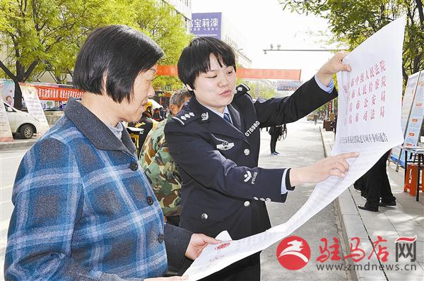 为扩大扫黑除恶专项斗争影响力,近日,确山县公安局积极开展扫黑除恶宣传活动。该局民警在人流密集处设置宣传点,发放宣传资料,为群众讲解扫黑除恶的有关内容,进一步营造扫黑除恶全民知晓、全民参与的活动氛围,形成强大的社会震慑力,让黑恶势力无处遁形。图为该局民警在为群众讲解扫黑除恶的有关知识。