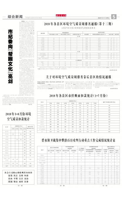 2018年各县区环境空气质量周排名通报(第十三期)