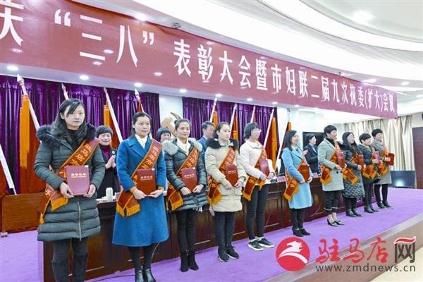会议对驻马店市“三八”红旗手(集体),驻马店市城乡妇女岗位建功先进集体(个人),驻马店市“最美家庭”,驻马店市“五好家庭”和家庭“十好”标兵,驻马店市十星级平安和睦家庭创建示范村(居)和“十星级平安和睦家庭”标兵户、示范户,驻马店市先进基层妇联组织和优秀基层妇联干部以及“好家规好家训”获奖作品等进行表彰。