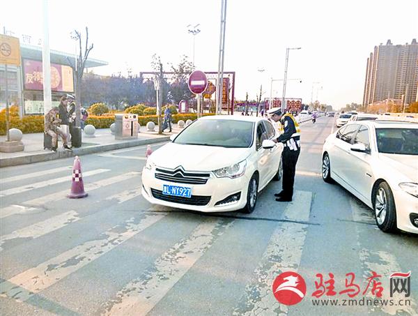 4月18日下午,一辆轿车行至驻马店西站附近时,由于没有在斑马线礼让行人,轿车司机受到交警的警告。