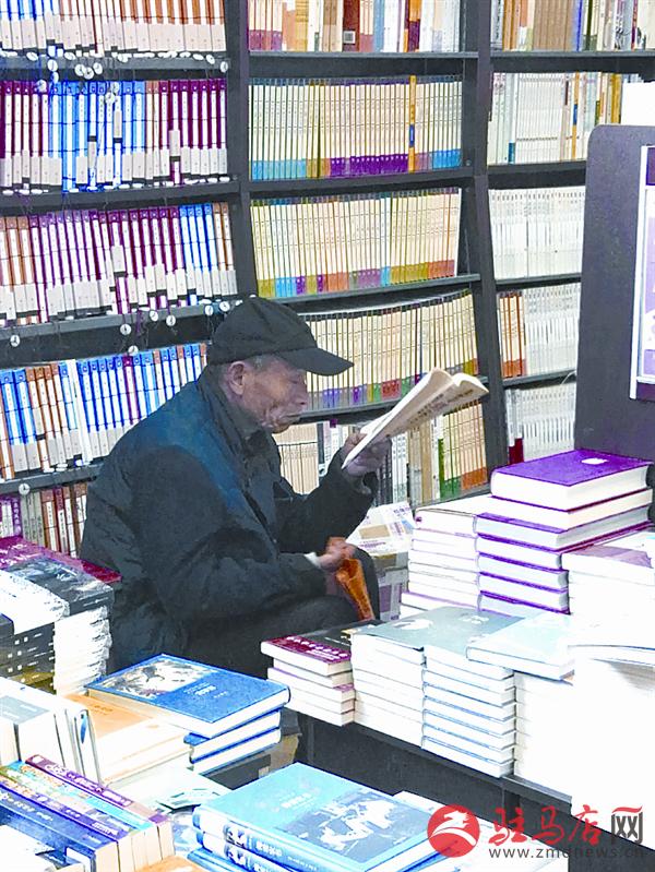 一名在书丛中认真阅读的老人引起了记者的注意。