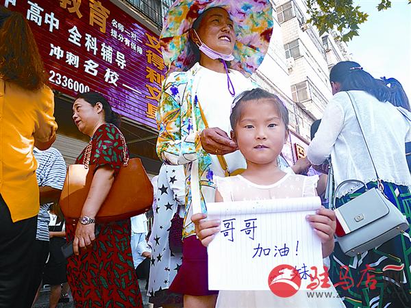 “大儿子15岁,小女儿4岁多。别看他们年龄相差得多,但妹妹给哥哥打气鼓劲可是不含糊!”昨天上午,在市第二初级中学考点外,市民王女士高兴地对记者说,女儿虽然不会写字,但硬是让大人握着她的小手,写下为哥哥加油的字样(如图)。