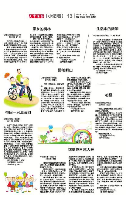 一天晚上吃过晚饭,我和妈妈去散步。走到一家商场门口,我们看见门前挂满了彩灯,原来是庆祝商场5周年生日。我仔细观察了一下,发现彩灯是有规律的,它们是按红、黄、蓝、绿依次排列的。妈妈说:“宝贝,你猜一猜第15盏灯是什么颜色?还有第21盏灯是什么颜色?”妈妈问完,我想到了老师教我们的方法,我想到的算式是:15÷4=3(组)……3(个),21÷4=5(组)……1(个),所以第15盏灯是蓝色,第21盏灯是红色。我告诉了妈妈,妈妈听完笑着说:“宝贝,非常正确。”