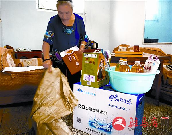 “都怪我贪小便宜。”记者和李先生一起来到王荣老人的住处,老人悔恨地说。记者看到,老人家的桌子上摆放着塑料盆、食用油、小袋大米、灯、净水器等物品。李先生告诉记者,这些东西是赠品,都是廉价货,根本不值多少钱。