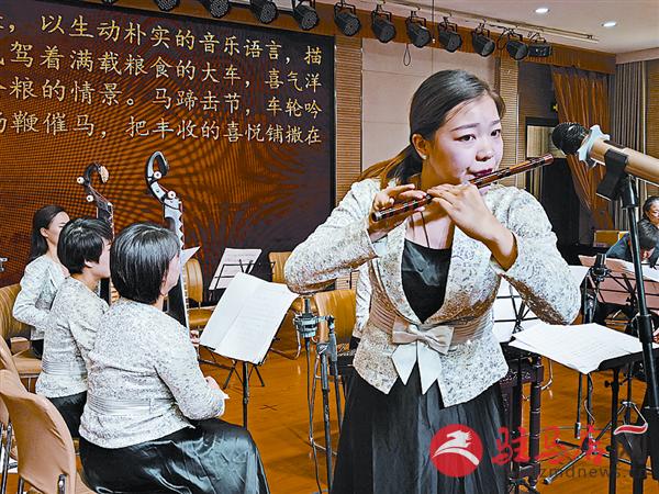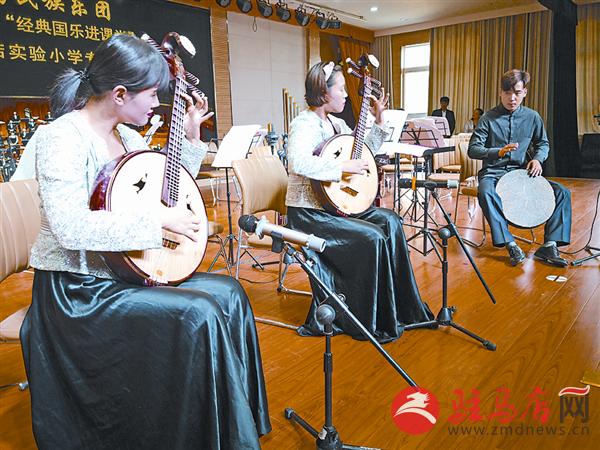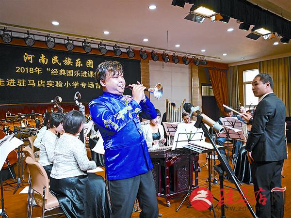 本报讯 《彩云追月》、《百鸟朝凤》、《十面埋伏》……10月23日下午,由河南省文化厅、河南省财政厅、河南歌舞演艺集团主办,河南民族乐团、天中晚报社小记者部、驻马店管乐之家承办的“经典国乐进课堂”专场音乐会,在驻马店实验小学北区5楼报告厅隆重举行,为广大师生和小记者带来了一场别开生面的民族音乐盛宴。