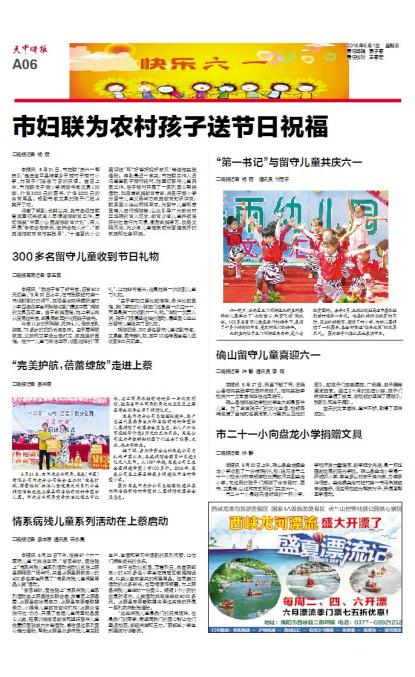 确山留守儿童喜迎六一
