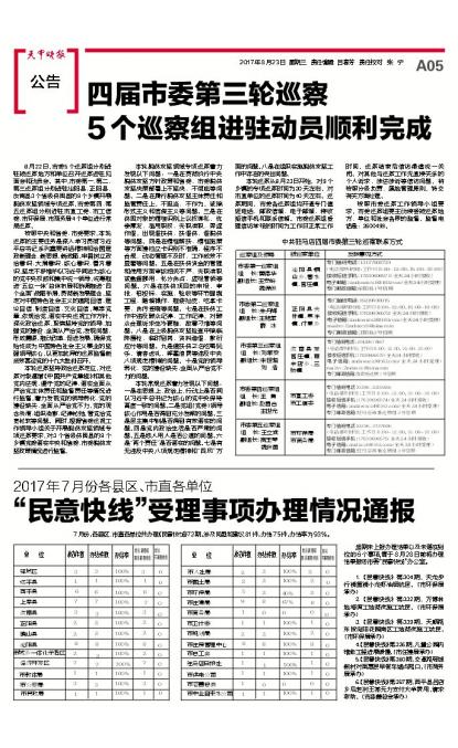 “民意快线”受理事项办理情况通报