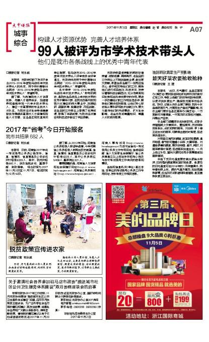 99人被评为市学术技术带头人