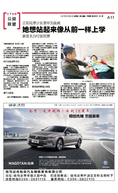 正阳花季少女患罕见疾病