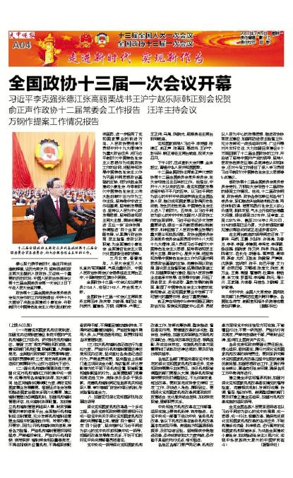 全国政协十三届一次会议开幕
