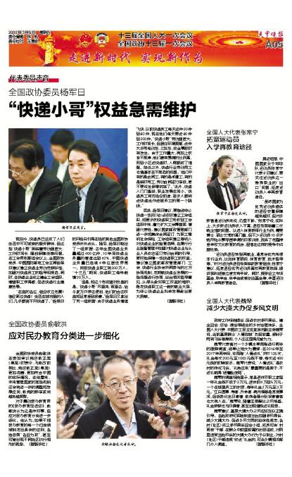 全国政协委员杨军日“快递小哥”权益急需维护