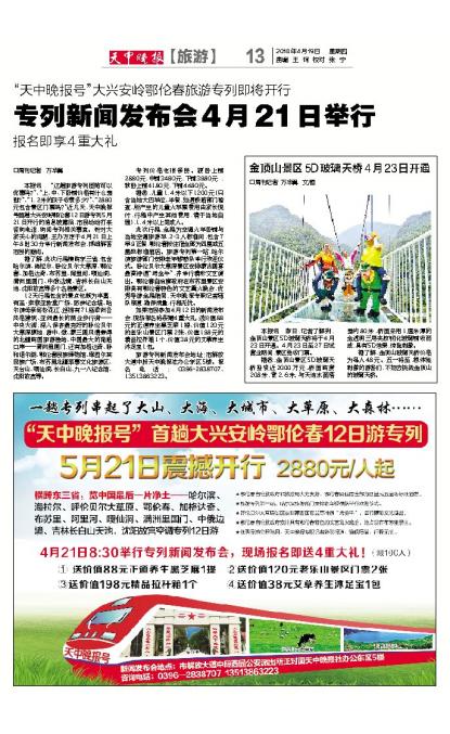 “天中晚报号”大兴安岭鄂伦春旅游专列即将开行