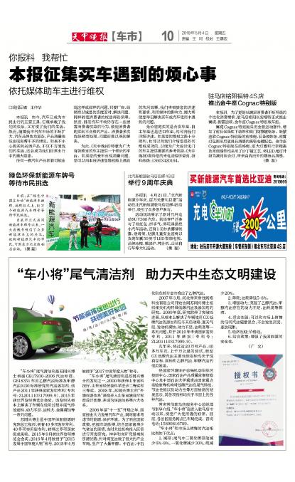 “车小将”尾气清洁剂 助力天中生态文明建设