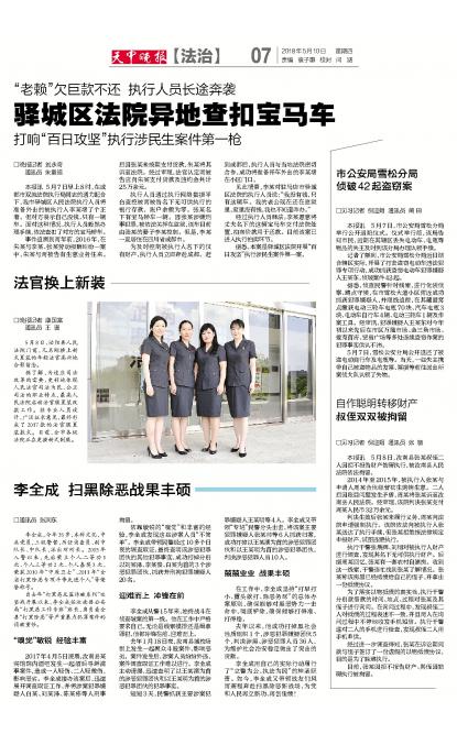 “老赖”欠巨款不还 驿城区法院异地查扣宝马车