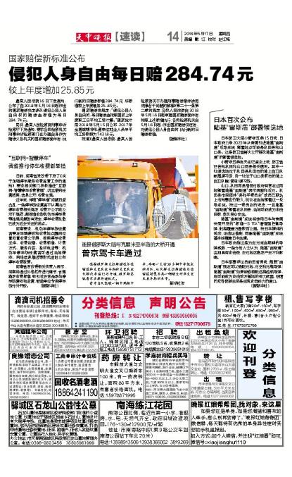国家赔偿新标准 侵犯人身自由每日赔284.74元