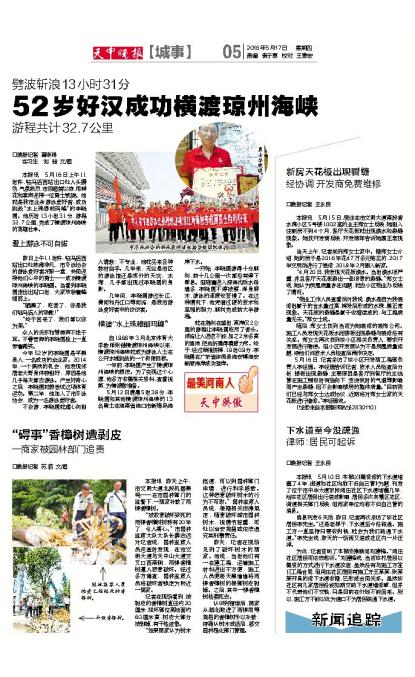 52岁好汉成功横渡琼州海峡