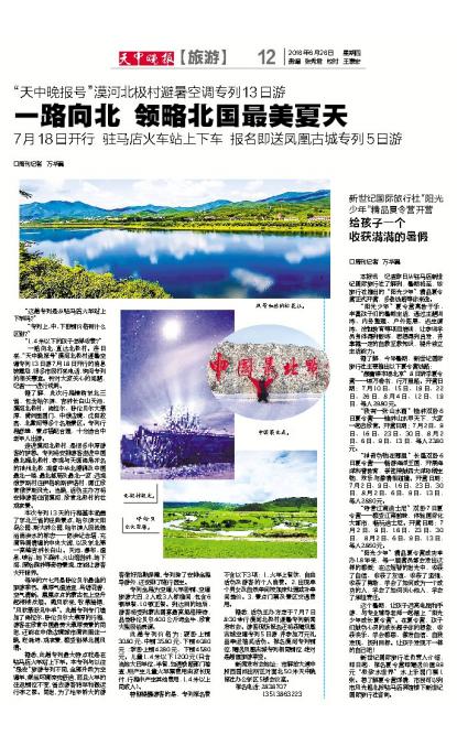 “天中晚报号”漠河北极村避暑空调专列13日游